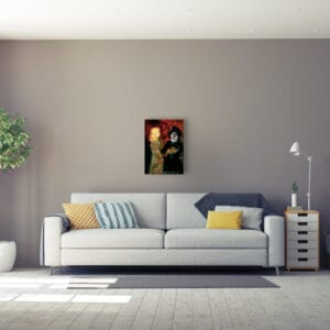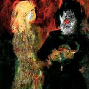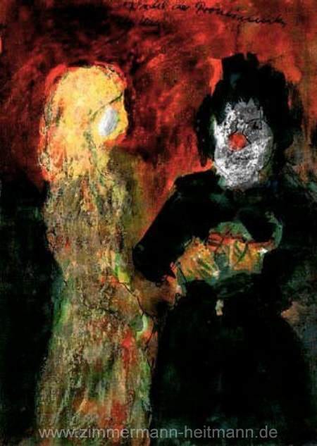 Die Darstellung zeigt den Künstler in einer Lieblingsrolle als Clown in der „Nacht der Prominenten“ im Zirkus mit Partnerin.