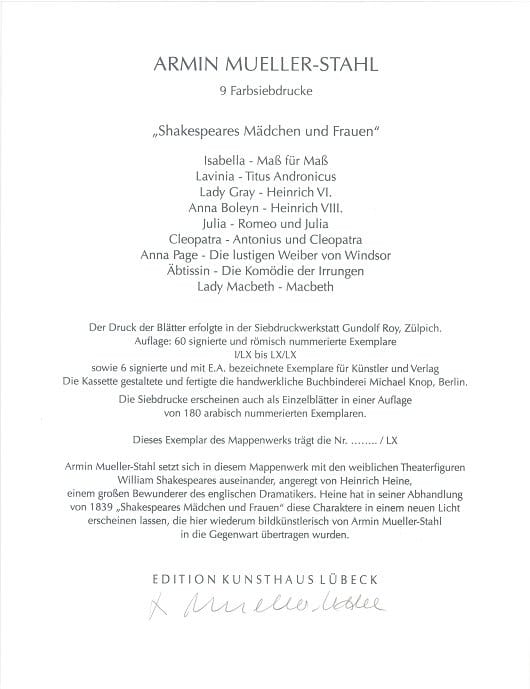 Armin Mueller-Stahl - Shakespeares Mädchen und Frauen (Mappenwerk)
