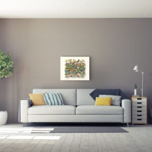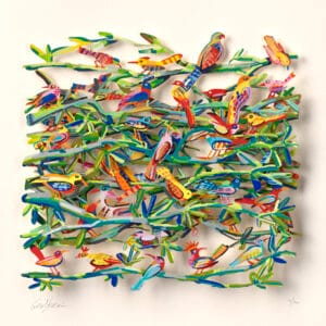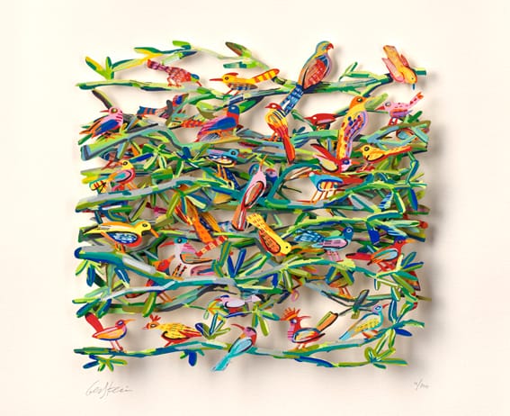 Handbemalte dreilagige lasergeschnittene Grafik aus schwerem Büttenpapier