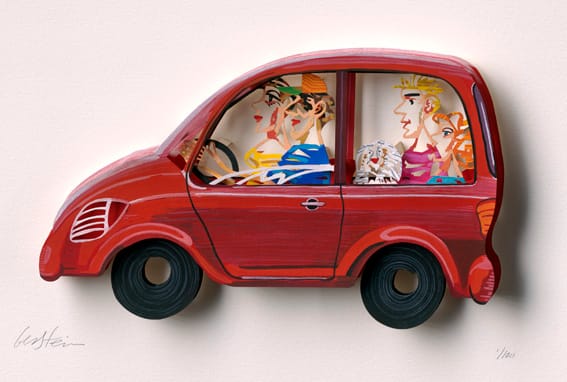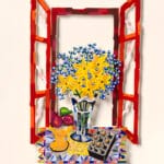 Handbemalte vierlagige lasergeschnittene Grafik aus schwerem Büttenpapier