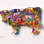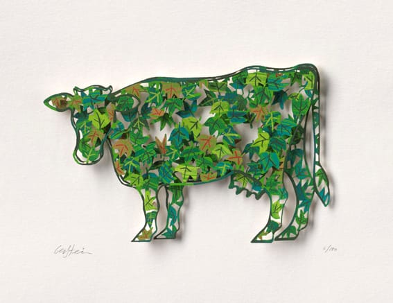 Handbemalte zweilagige lasergeschnittene Grafik aus schwerem Büttenpapier