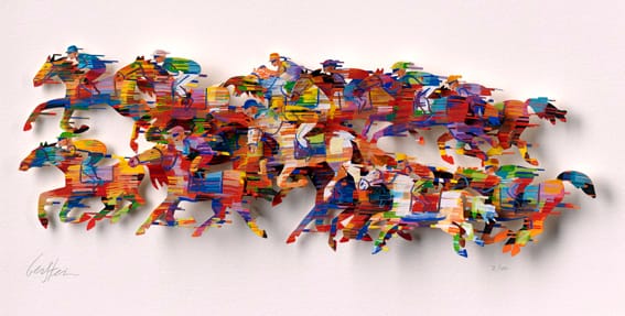 Handbemalte dreilagige lasergeschnittene Grafik aus schwerem Büttenpapier