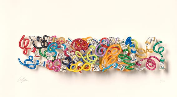 Handbemalte dreilagige lasergeschnittene Grafik aus schwerem Büttenpapier