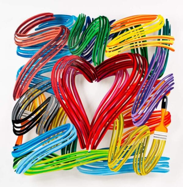Wandskulptur 2-lagig, Mixed Media auf geschnittenem Aluminium