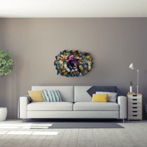 Mixed Media und Lackrelief auf gebürstetem Aluminium Lasercut auf 2 Ebenen