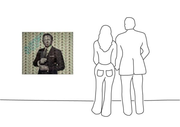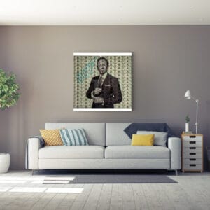Mix-Media-Kunstwerk, die mit Epoxidharz übergossen ist, eine Kombination aus verschiedenen modernen hochwertigen Drucktechniken in Kombination mit traditioneller Handarbeit.