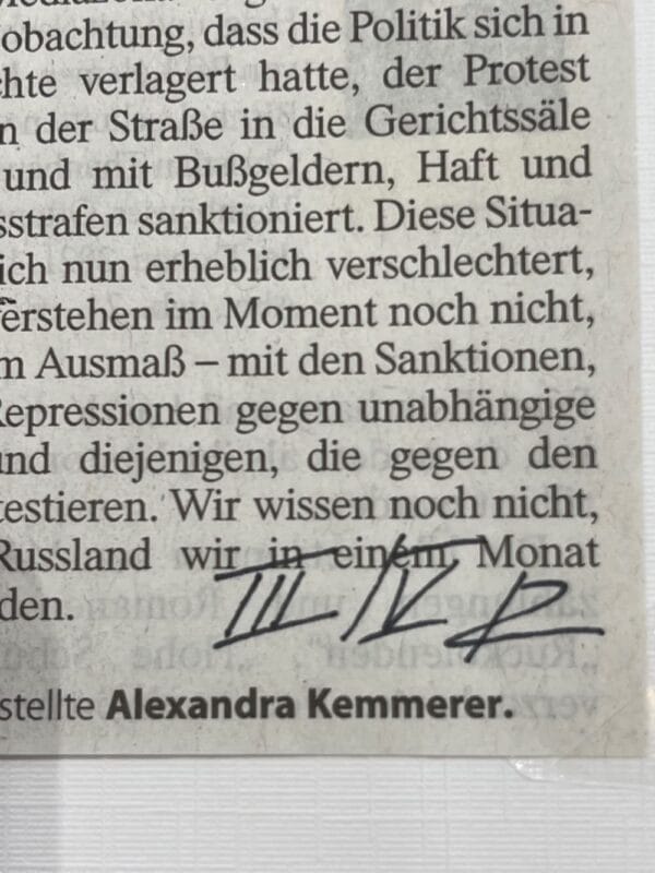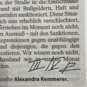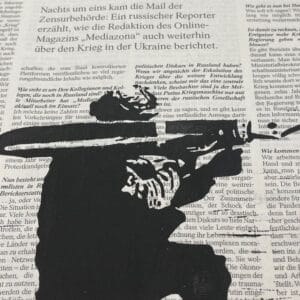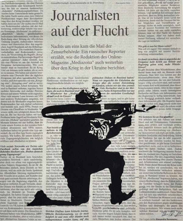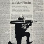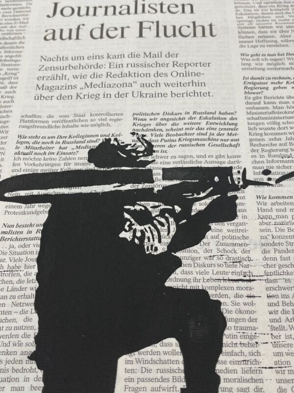 Gedruckt wurde diese Kunstwerk in einer Auflage von 5 Exemplaren als Linolschnitt auf das Original des Zeitungsartikel – So ist jeder Druck ein Unikat.