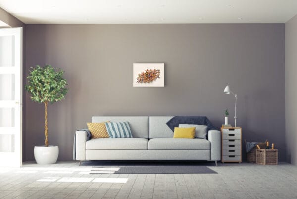Handbemalte dreilagige lasergeschnittene Grafik aus schwerem Büttenpapier