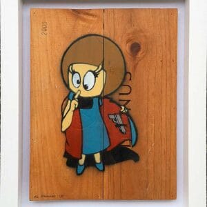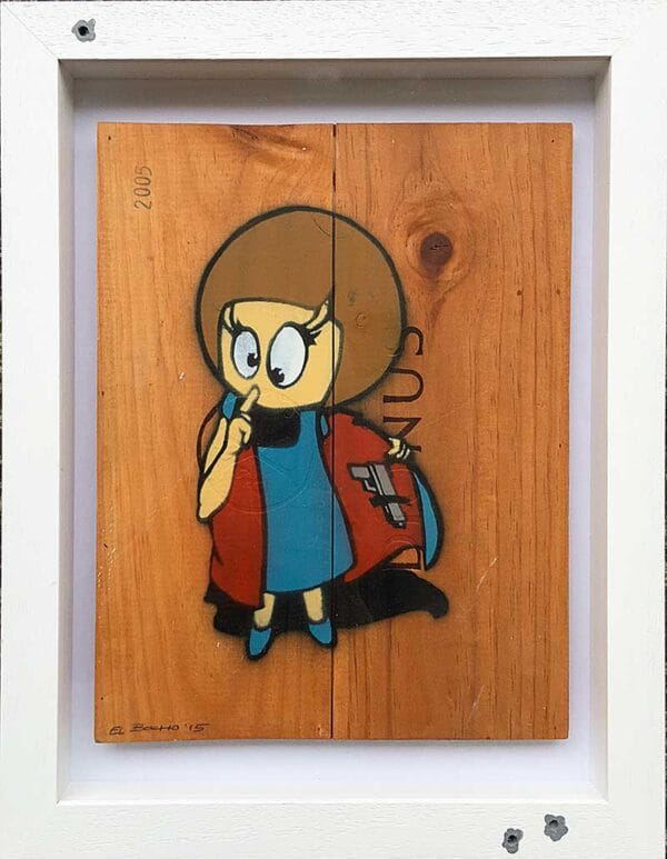 Im Rahmen befinden sich stilisiere Einschusslöcher.