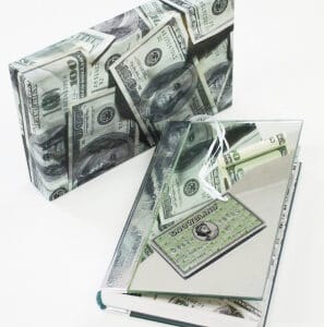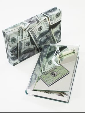 Buch / Spiegel / Kreditkarte / 100 $ Geldschein