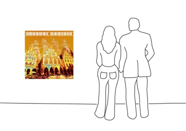 Weitere Größen und Materialien: Digitaldruck auf Leinwand/Keilrahmen: 50 x 50 cm: 129 Euro / 70 x 70 cm: 220 Euro / 80 x 80 cm: 295 Euro / 100 x 100 cm: 390 Euro / 120 x 120 cm: 490 Euro Digitaldruck auf gebürstetem AluDibond: 50 x 50 cm: 175 Euro / 70 x 70 cm: 285 Euro / 100 x 100 cm: 545 Euro / 120 x 120 cm: 595 Euro / 150 x 150 cm: 645 Euro Digitaldruck hinter Plexiglas kaschiert: 50 x 50 cm: 175 Euro / 70 x 70 cm: 285 Euro / 100 x 100 cm: 545 Euro / 120 x 120 cm: 590 Euro