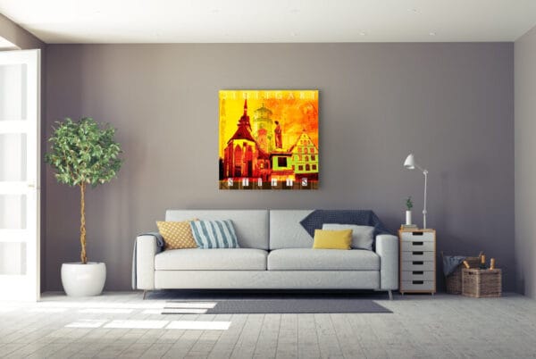 Weitere Größen und Materialien: Digitaldruck auf Leinwand/Keilrahmen: 50 x 50 cm: 129 Euro / 70 x 70 cm: 220 Euro / 80 x 80 cm: 295 Euro / 100 x 100 cm: 390 Euro / 120 x 120 cm: 490 Euro Digitaldruck auf gebürstetem AluDibond: 50 x 50 cm: 175 Euro / 70 x 70 cm: 285 Euro / 100 x 100 cm: 545 Euro / 120 x 120 cm: 595 Euro / 150 x 150 cm: 645 Euro Digitaldruck hinter Plexiglas kaschiert: 50 x 50 cm: 175 Euro / 70 x 70 cm: 285 Euro / 100 x 100 cm: 545 Euro / 120 x 120 cm: 590 Euro