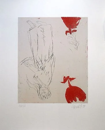 Georg Baselitz - Frau am Abgrund, zwei Rosen