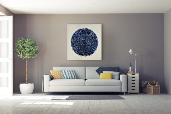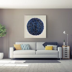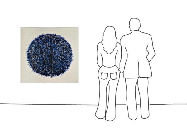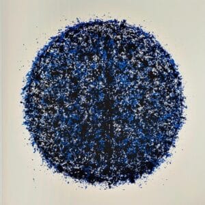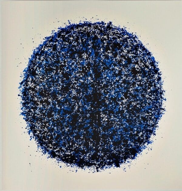 Er ist „das Schönste, was wir haben, ein Ort der menschlichen Bewahrung“, unser Blauer Planet, die Erde. Günther Uecker hat diesem Ort jetzt eine Grafik gewidmet. Blaue und schwarze Farbspuren, durch die an vielen Stellen das Weiß des Blattes bricht, zeigen einen energiegeladenen Körper; poetisch fest in seinem Innern und zugleich sehr verletzlich am äußeren Rand. Es scheint gerade so, als glühe dieser Blaue Planet. Die Grafik folgt einem 3×3 Meter großen Gemälde von 2011, das zum Zyklus „Geschriebene Bilder“ gehört. In der Grafik indes scheint uns der Appell des Künstlers, der Bedrohung unseres Planeten Erde Einhalt zu gebieten noch intensiver, direkter.