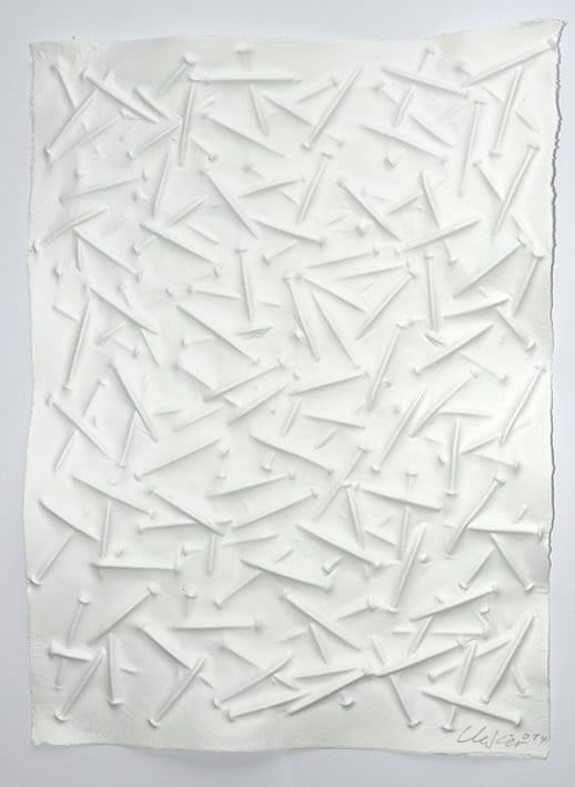 Günther Uecker - Friedensgebote I 2014 (Papier) in Plexiglashaube