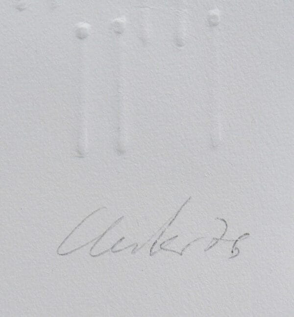 Günther Uecker weckte schon 1956 durch den Einbezug unkonventioneller Werkstoffe das Interesse der internationalen Kunstszene. In diesem Jahr stellte er erstmals reliefartigen Nagebilder vor, die er mit weißer Farbe bemalte. Daran knüpft die limitierte Prägegrafik des deutschen Künstlers an, die im Jahr 1976 entstand. Allerdings sind die Nägel nicht selbst Teil des Werks. Durch sie ergaben sich die unterschiedlich gruppierten Erhebungen auf der Leinwand. Auf den Einsatz klassischer Materialien wie Farben verzichtete der zeitgenössische Künstler bei der handsignierten Grafik komplett.