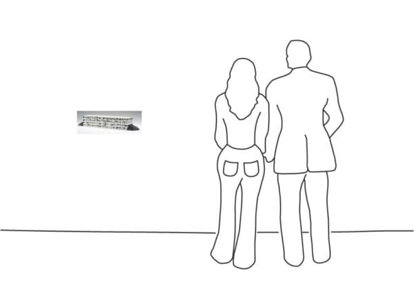 Eingefasst durch zwei Bronzeskulpturen.
