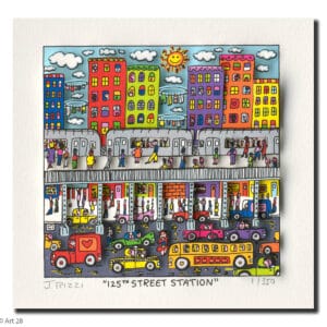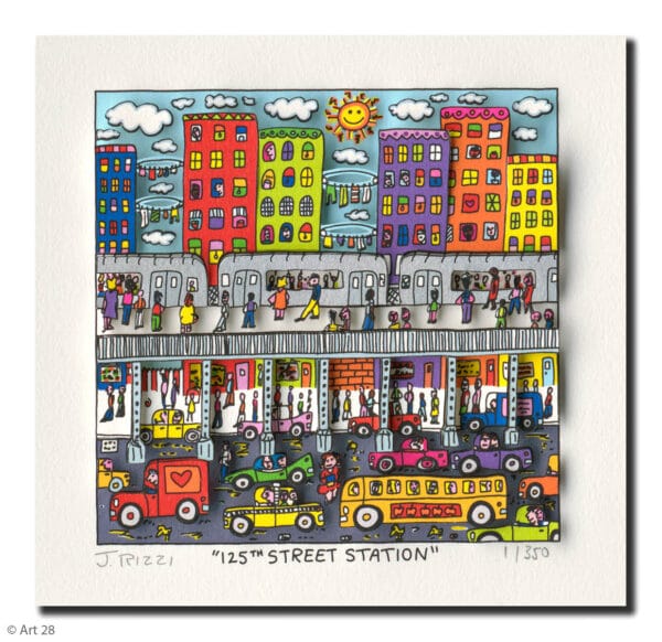 „125th Street Station“, ist eine original 3-D Grafik des im Dezember 2011 verstorbenen New Yorker Neo-Pop-Art-Künstlers James Rizzi. Wir hatten eine sehr enge Beziehung zu James und waren mit die erste Galerie in Deutschland die ihn ausstellte.Diese Arbeit hat er noch vor seinem Tod entworfen und damals für die Veröffentlichung freigegeben, die Montage ist nun ausgeführt worden. Diese 3-D Grafik ist auch aktuell limitiert, im Druck signiert und wurde von Hand nummeriert. Die Echtheit wird durch ein einzigartiges Hologramm garantiert!