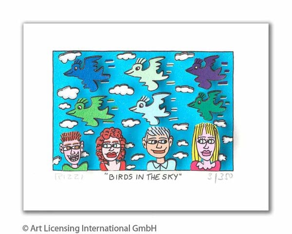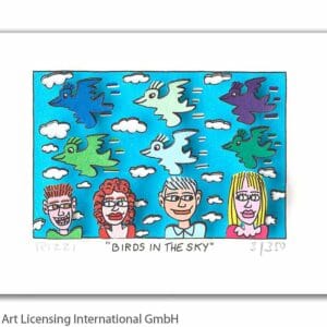 „Birds In The Sky“ ist eine original 3-D Grafik des im Dezember 2011 verstorbenen New Yorker Neo-Pop-Art-Künstlers James Rizzi. Wir hatten eine sehr enge Beziehung zu James und waren mit die erste Galerie in Deutschland die ihn ausstellte.