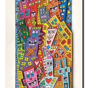„Borderless Buildings“, ist eine original 3-D Grafik des im Dezember 2011 verstorbenen New Yorker Neo-Pop-Art-Künstlers James Rizzi. Wir hatten eine sehr enge Beziehung zu James und waren mit die erste Galerie in Deutschland die ihn ausstellte.