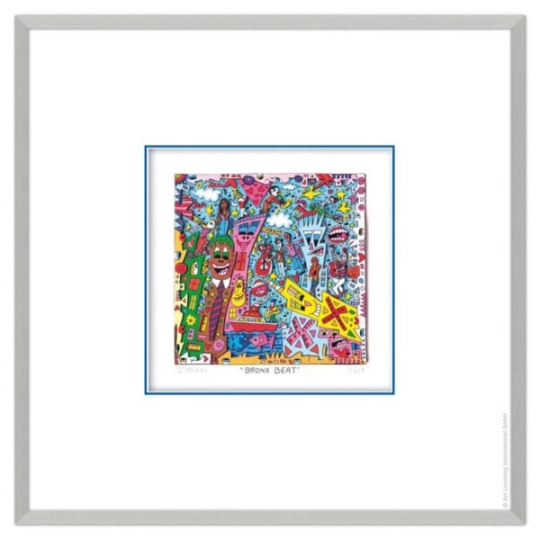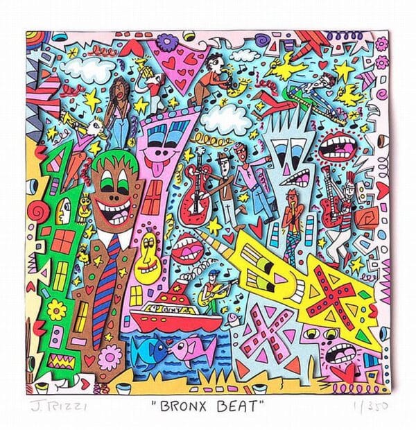 „Bronx Beat“, ist eine original 3-D Grafik des im Dezember 2011 verstorbenen New Yorker Neo-Pop-Art-Künstlers James Rizzi. Wir hatten eine sehr enge Beziehung zu James und waren mit die erste Galerie in Deutschland die ihn ausstellte.