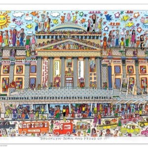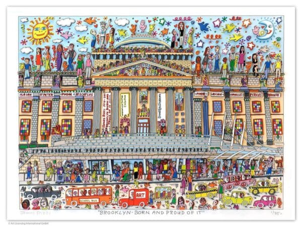 James Rizzi – „BROOKLYN BORN AND PROUD OF IT“: Ein Blick auf das pulsierende Leben in Brooklyn. Das Bild „BROOKLYN BORN AND PROUD OF IT“ von Künstler James Rizzi zeichnet ein lebendiges Bild der Stadt. Es zeigt die vielen Gebäude und den regen Verkehr, die dieses Stadtviertel ausmachen. Die Farben und Formen vermitteln ein Gefühl von Energie und Stolz auf die Heimat. Mit seinem Kunstwerk „BROOKLYN BORN AND PROUD OF IT“ hat James Rizzi ein lebendiges Bild von Brooklyn geschaffen.