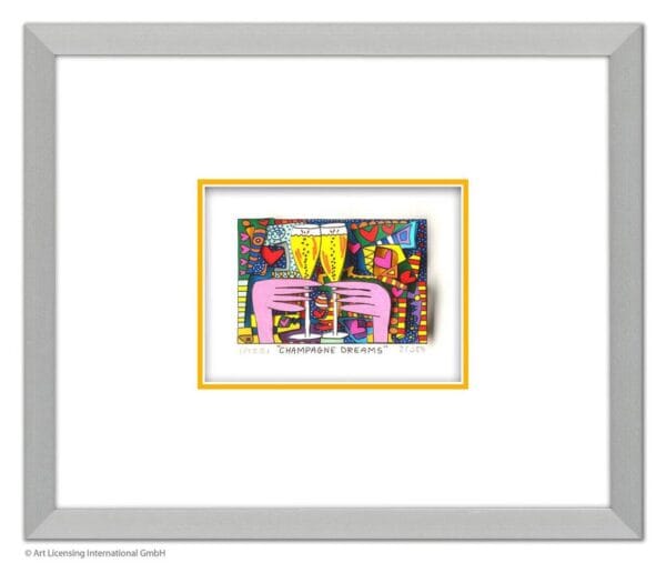 Das Bild „CHAMPAGNE DREAMS“ von James Rizzi ist ein wunderschönes Kunstwerk für alle Champagner-Liebhaber. Es zeigt zwei fröhliche Figuren, die in einer Welt voller Farben und Freude schweben. Das Gemälde ist durch seine leuchtenden Farben besonders ansprechend und es vermittelt ein Gefühl der Leichtigkeit und des Glücks. Der Künstler hat hier einen magischen Moment eingefangen, den man nur beim Genießen eines guten Glases Champagner erlebt. Mit diesem Bild kann man jeden Raum verschönern und gleichzeitig ein bisschen Luxus in sein Zuhause bringen. Man kann sicher sein, dass es jedem Betrachter ein Lächeln ins Gesicht zaubert.