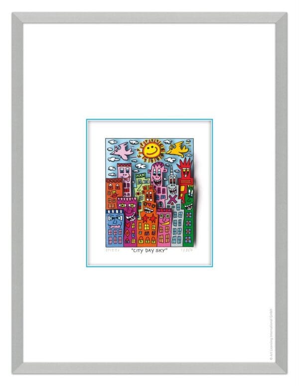 Der „City Day Sky“ von James Rizzi ist ein atemberaubendes Kunstwerk, das die Lebensfreude und den Charme der Stadt New York widerspiegelt. Der Künstler hat sich für diese Arbeit auf leuchtende Farben konzentriert, um die Dynamik des städtiscens zu vermitteln. Die hellen Farben machen es leicht, in dem Gemälde zu versinken, als ob man selbst mitten im Getriebe steht. Das Bild zeigt viele bekannte Sehenswürdigkeiten und Wahrzeichen der Stadt sowie Einzelheiten, die nur ein Einheimischer erkennen würde. Es ist eine Hommage an die unzähligen Facetten des Großstadtlebens, die jeden Tag zum Leben erwecken. Mit seiner modernen Interpretation des urbanen Lebens bietet „City Day Sky“ von James Rizzi einen Blick auf die Schönheit und Vielfalt der Stadt New York. Dieses Meisterwerk wird Ihnen helfen, jeden Tag mit neuer Energie zu starten!