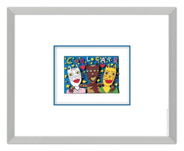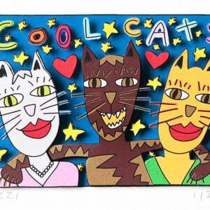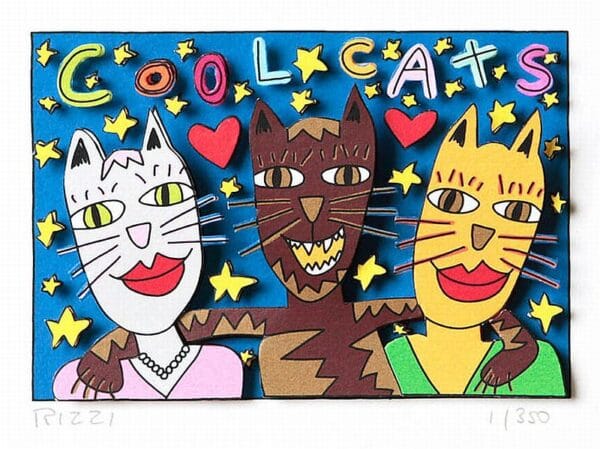 „Cool Cats“, ist eine original 3-D Grafik des im Dezember 2011 verstorbenen New Yorker Neo-Pop-Art-Künstlers James Rizzi. Wir hatten eine sehr enge Beziehung zu James und waren mit die erste Galerie in Deutschland die ihn ausstellte.