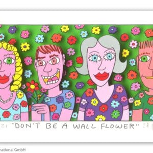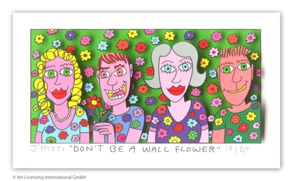 „Dont be a Wallflower“ von James Rizzi ist ein wunderschönes Kunstwerk, das Ihr Zuhause in eine Oase der Inspiration und des Komforts verwandeln kann. Dieses beeindruckende Gemälde zeigt zwei Blumen, die sich vor dem Hintergrund eines Menschen erheben. Die Farben dieser Leinwand-Kunst machen es zu einem unvergesslichen Anblick für jeden Raum. Das Bild bringt Freude und Wärme in jedes Zimmer und schafft eine warme Atmosphäre. Es ist perfekt als Geschenk oder Dekoration für Ihren Wohnraum geeignet. Der Künstler James Rizzi hat mit seiner Arbeit ein Kunstwerk erschaffen, das Sie nicht mehr missen möchten!