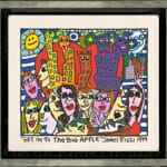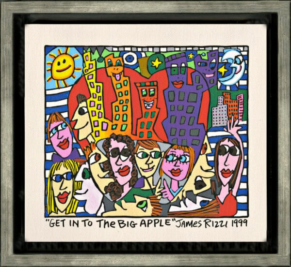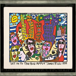 „Get Into The Big Apple“, ist ein limitierter Pigmentdruck in einem Schattenfugenrahmen des im Dezember 2011 verstorbenen New Yorker Neo-Pop-Art-Künstlers James Rizzi. Wir hatten eine sehr enge Beziehung zu James und waren mit die erste Galerie in Deutschland die ihn ausstellte.