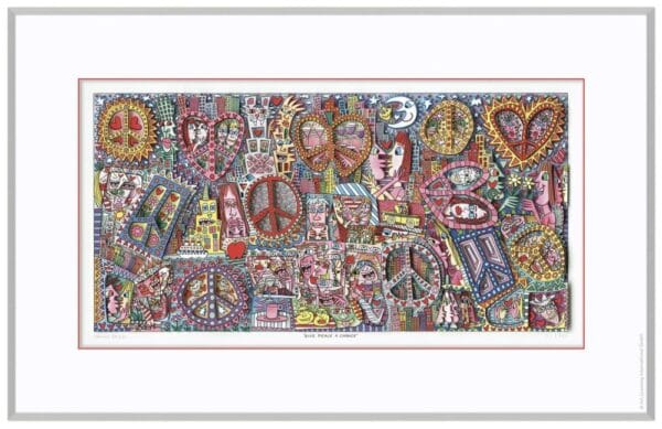 „Give Peace A Chance“, ist eine original 3-D Grafik des im Dezember 2011 verstorbenen New Yorker Neo-Pop-Art-Künstlers James Rizzi. Wir hatten eine sehr enge Beziehung zu James und waren mit die erste Galerie in Deutschland die ihn ausstellte.Diese Arbeit hat er noch vor seinem Tod entworfen und damals für die Veröffentlichung freigegeben, die Montage ist nun ausgeführt worden. Diese 3-D Grafik ist auch aktuell limitiert, im Druck signiert und wurde von Hand nummeriert. Die Echtheit wird durch ein einzigartiges Hologramm garantiert!