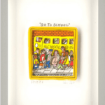 Die „Go to“ Bilder von James Rizzi kommen mit einem Aluminium Rahmen (Silber) und Museumsglas.