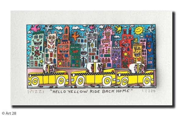 „Hello Yellow Ride Back Home“, ist eine original 3-D Grafik des im Dezember 2011 verstorbenen New Yorker Neo-Pop-Art-Künstlers James Rizzi. Wir hatten eine sehr enge Beziehung zu James und waren mit die erste Galerie in Deutschland die ihn ausstellte.