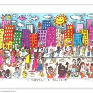 „It Happens in Harlem“ von James Rizzi ist ein wunderschönes Kunstwerk, das die Stadt Harlem in New York City zum Leben erweckt. Dieses Meisterwerk aus dem Jahr 2021 ist eine farbenfrohe und lebendige Hommage an die vielen Gesichter Harlems. Mit seinen bunten Farben und seinem künstlerischen Design strahlt es Energie und Freude aus. Es ist ein unvergesslicher Blick auf den berühmtesten Viertel der Welt – eines, das sich stetig verändert hat, aber immer noch ganz besonders ist. „It Happens in Harlem“ ist ein Muss für alle Fans des Künstlers oder jeden, der nach einem schönen Kunstwerk sucht, um sein Zuhause zu verschönern.