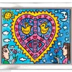 „Living On A Rainbow Road“, ist ein limitierter Siebdruck in einem Schattenfugenrahmen des im Dezember 2011 verstorbenen New Yorker Neo-Pop-Art-Künstlers James Rizzi. Wir hatten eine sehr enge Beziehung zu James und waren mit die erste Galerie in Deutschland die ihn ausstellte.