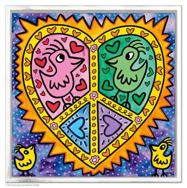 Das „MOMMY + DADDY IN LOVE“ von James Rizzi ist ein wunderschönes Kunstwerk, das die Liebe zwischen Eltern und Kindern in einer einzigartigen Weise zeigt. Es besteht aus zwei Vögeln, die sich vor einem großen roten Herz treffen und ihre Köpfe berühren. Die Farben und Formen des Bildes machen es lebendig und voller Emotionen. Es macht jeden Raum schöner und bringt Freude in Ihr Zuhause. Mit seinen warmen Tönen und den liebevollen Details ist dieses Kunstwerk der perfekte Weg, um Ihrer Familie zu zeigen, wie sehr Sie sie lieben. Das „MOMMY + DADDY IN LOVE“ von James Rizzi ist eine tolle Geschenkidee für alle, die sich nach mehr Liebe in ihrem Leben sehnen.
