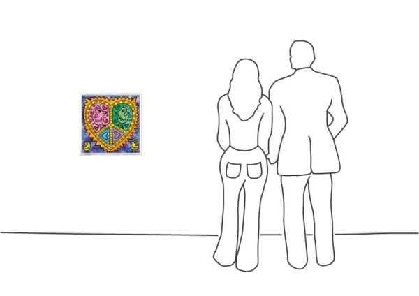 „Mommy + Daddy In Love“, ist ein limitierter Pigmentdruck in einem Schattenfugenrahmen des im Dezember 2011 verstorbenen New Yorker Neo-Pop-Art-Künstlers James Rizzi. Wir hatten eine sehr enge Beziehung zu James und waren mit die erste Galerie in Deutschland die ihn ausstellte.