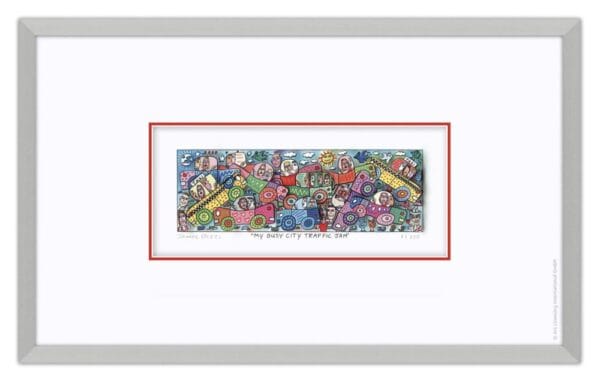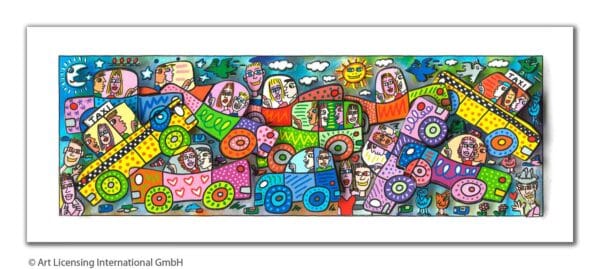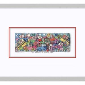 „My Busy City Traffic Jam“, ist eine original 3-D Grafik des im Dezember 2011 verstorbenen New Yorker Neo-Pop-Art-Künstlers James Rizzi. Wir hatten eine sehr enge Beziehung zu James und waren mit die erste Galerie in Deutschland die ihn ausstellte.