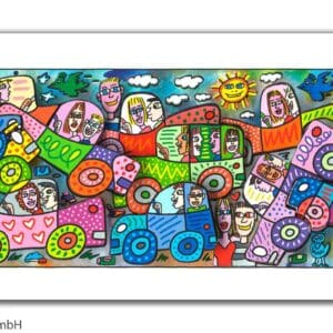 James Rizzi ist durch seine 3-D Grafiken weltbekannt geworden. Seine Themen fand James Rizzi in seiner Heimatstadt NYC, die er in den 3-D Grafiken in seinem einzigartigen Stil umgesetzt hat. Dieses 3-D Grafik wird vom Verlag aus mit dem typischen Rizzi-Passepartout mit farbiger Schnittkante und räumlicher Tiefe im Format 24 x 40 cm geliefert – das Passepartout ist bereits im Preis inbegriffen. Gern liefern wir Ihnen die Bilder auch komplett gerahmt. Sprechen Sie uns zur Rahmung an. Wir unterbreiten Ihnen gern ein Angebot.