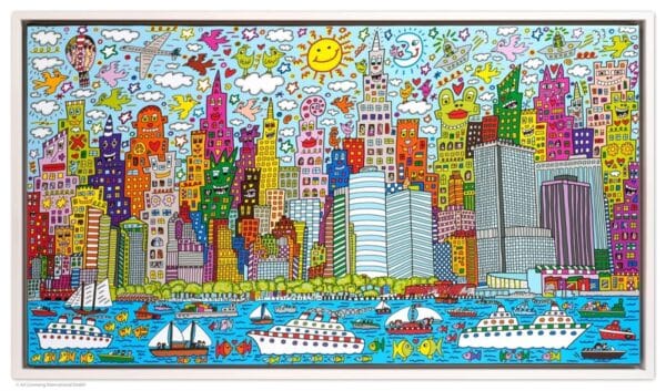 Das „My New York City (Leinwand)“ von James Rizzi ist eine wunderschöne Hommage an die Stadt, die niemals schläft. Dieses Kunstwerk zeigasige Leben in der Stadt mit Liebe und Segelbooten. Die lebendigen Farben machen es zu einem unvergesslichen Blickfang für jedes Zuhause oder Büro. Es ist auf hochwertiger Leinwand gedruckt und besteht aus einer robusten Konstruktion, so dass es langlebig und haltbar ist. Das Bild hat einen Rahmen aus Holz, was iin luxuriöses Finish verleiht. Mit diesem Meisterwerk im Raum können Sie sich stets an den Charme und die Atmosphäre erinnern, die New York City bietet.
