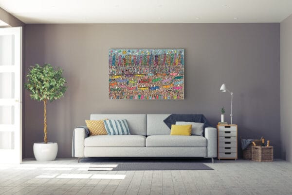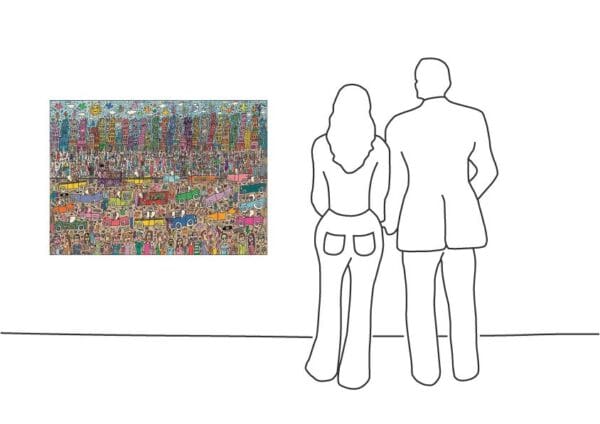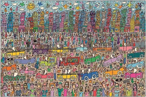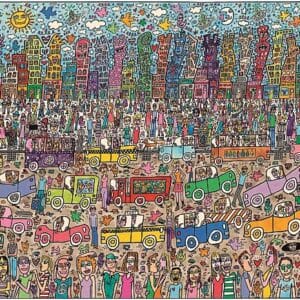Die größte Graphik von James Rizzi aller Zeiten – Sein Masterpiece! Thema ist seine geliebte Heimatstadt New York, die er liebevoll “ Rizzi City “ nennt.