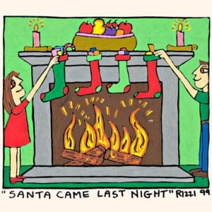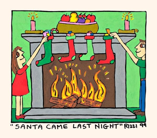 „Santa Came Last Night„, das neue Kunstwerk von James Rizzi, ist ein wahrlich bezauberndes Meisterwerk. Dieses Gemälde vereint Menschen, Liebe und Weihnachten in einem zauberhaften Bild. Der Kamin im Zentrum des Gemäldes erinnert an die Traditionen der Weihnachtstage, die mit Freude und Familie gefeiert werden. Das Hauptthema des Bildes sind jedoch die liebenswürdigen Figuren, die sich um den Kamin versammeln. Sie strahlen vor Glück und Freude über die gemeinsame Zeit und lassen uns an ihrem Wohlbefinden teilhaben. Mit seinen leuchtenden Farben und sanften Linien schafft es „Santa Came Last Night“ eine warme und freundliche Atmosphäre. Es ist ein wundervolles Geschenk für alle, die diese magische Stimmung nicht verpassen möchten!