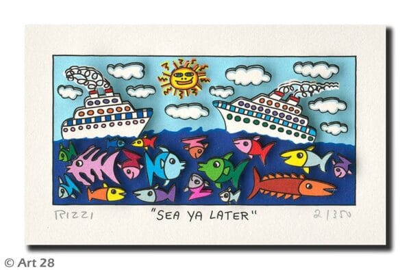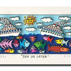 „Sea Ya Later“, ist eine original 3-D Grafik des im Dezember 2011 verstorbenen New Yorker Neo-Pop-Art-Künstlers James Rizzi. Wir hatten eine sehr enge Beziehung zu James und waren mit die erste Galerie in Deutschland die ihn ausstellte.
