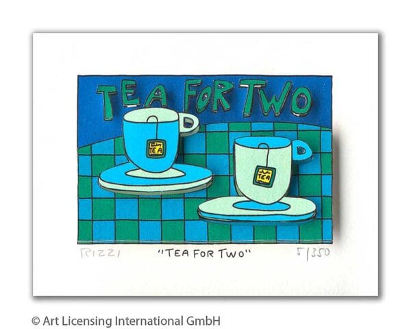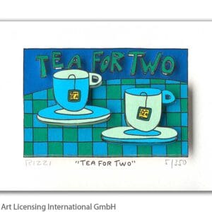 „Tea For Two“, ist eine original 3-D Grafik des im Dezember 2011 verstorbenen New Yorker Neo-Pop-Art-Künstlers James Rizzi. Wir hatten eine sehr enge Beziehung zu James und waren mit die erste Galerie in Deutschland die ihn ausstellte.