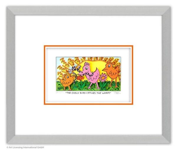 Das wundervolle Kunstwerk „The Early Bird Catches The Worm“ von James Rizzi ist ein 3D-Konstruktionskunstwerk, das in einer limitierten Auflage von 350 + 50 AP + 4cksigniert ersche hat eine Größe von 5,3 cm x 10 cm und wird im Jahr 2022 veröffentlicht. Dieses Meisterwerk der modernen Pop Art zeigt die kunstvollen Details des Künstlers James Rizzi und bietet einen unvergesslichen Eindruck. Mit seinem lebendigen Farbschema und den aufregenden 3D-Elementen fängt es jeden Blick sofort ein! Holen Sie sich jetzt dieses außergewöhnliche Kunstwerk und genießen Sie die erlesene Schönheit des großartigen Künstlers James Rizzi.