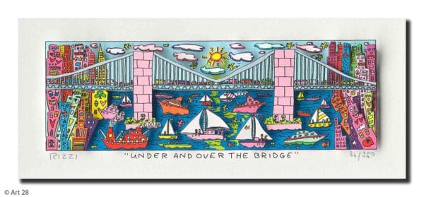 „Under And Over The Bridge“, ist eine original 3-D Grafik des im Dezember 2011 verstorbenen New Yorker Neo-Pop-Art-Künstlers James Rizzi. Wir hatten eine sehr enge Beziehung zu James und waren mit die erste Galerie in Deutschland die ihn ausstellte.