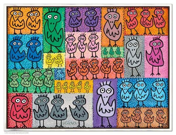 „We Got Nothing Better To Do Than …“, ist ein limitierter Pigmentdruck in einem Schattenfugenrahmen des im Dezember 2011 verstorbenen New Yorker Neo-Pop-Art-Künstlers James Rizzi. Wir hatten eine sehr enge Beziehung zu James und waren mit die erste Galerie in Deutschland die ihn ausstellte.
