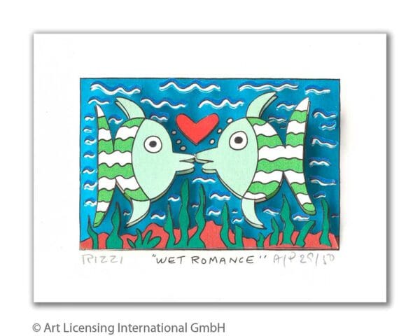 „Wet Romance“, ist eine original 3-D Grafik des im Dezember 2011 verstorbenen New Yorker Neo-Pop-Art-Künstlers James Rizzi. Wir hatten eine sehr enge Beziehung zu James und waren mit die erste Galerie in Deutschland die ihn ausstellte.