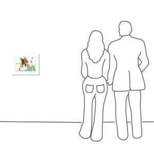 Es handelt sich um einen silbernen Holzrahmen mit weißem Passepartout und Floatglas.